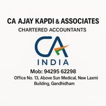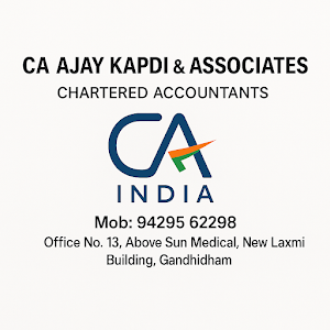 CA AJAY KAPDI is a professional Chartered Accountant in Gandhidham offering reliable support for GST registration and return filing, income tax return (ITR) filing, company registration, and complete business compliance services. As a trusted CA firm in Gandhidham, we assist startups, businesses, and individuals with accounting, tax planning, audit, and MSME/Udyam registration. Our CA office in Gandhidham focuses on accurate documentation, timely filings, and practical financial guidance to help businesses stay compliant and grow smoothly. We also provide support for Pvt Ltd and LLP registration, TDS return filing, and ongoing consultancy. Serving clients across Gandhidham, Adipur, Mundra, and nearby Kutch.